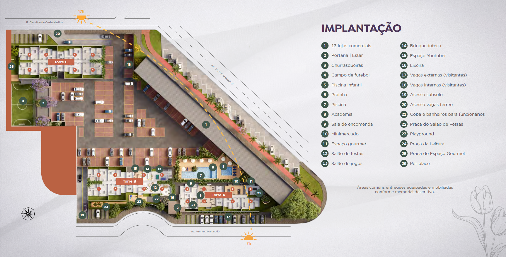Facilidade e Charme: Tenha lojas e serviços essenciais a poucos passos de casa, em um ambiente planejado para adicionar charme e conveniência à rotina dos moradores.